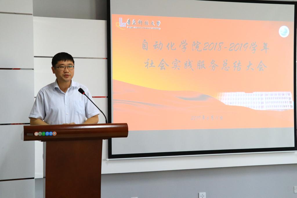会上播放了志愿者开展社会实践的纪录片、宣读了青岛市残联写给所有志愿者的感谢信、与会老师为先进个人颁发荣誉证书,在场同学深受触动,同时也感受到莫大的鼓励。志愿者代表杨应锋分享了自己参加志愿活动的经历与感悟,表示将继续秉承和发扬志愿服务精神,传递爱心。于彬还就2019年暑期“三下乡”社会实践活动作动员。
