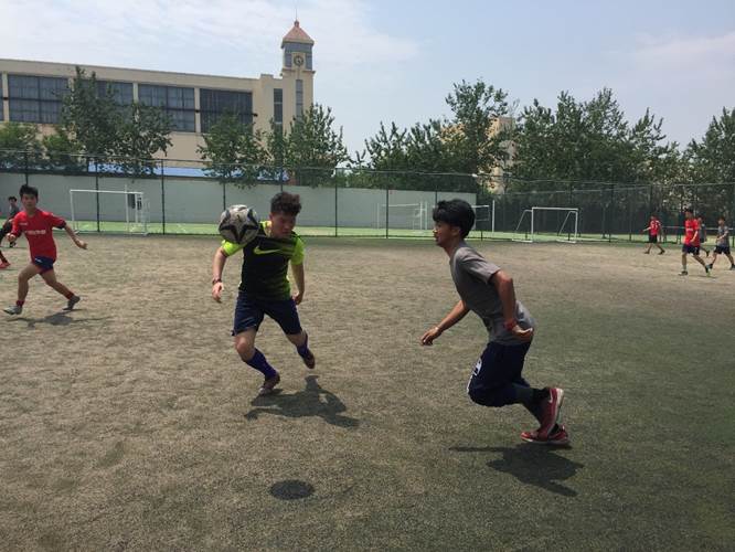 学子之间感情,5月25日上午,两院于南苑足球场举办了一场友谊赛。双方同学提前进行了热身训练,赛前,同学们握手致意,以示友好。
