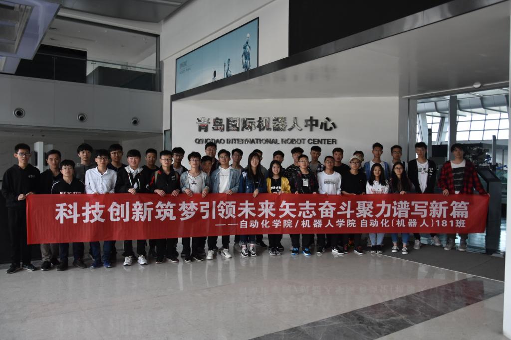 为激发创新意识,提升专业素养,培育专业认同,5月12日上午,自动化(机器人)181班团支部组织全体团员赴青岛国际机器人中心和青岛红树林科技有限公司开展“科技创新筑梦引领未来,矢志奋斗聚力谱写新篇”主题团日活动。班主任老师邢关生、红树林科技有限公司总经理周希胜带队参加学习。