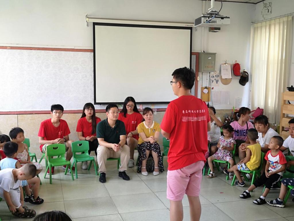 辅导员刘海波老师、关爱团全体成员、幼儿园学生及学生家长,座谈会由关爱团成员姬生宵主持。