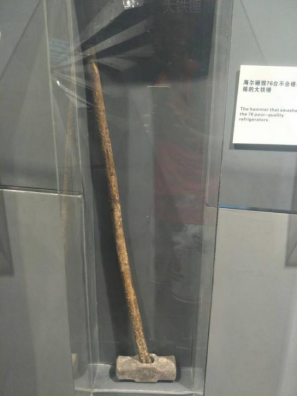 通过工作人员的讲解和现场观看海尔发展纪录片,调研团了解到,在1984年,两个濒临倒闭的集体小厂合并成立了青岛电冰箱总厂,并由当时担任青岛市家电公司副经理的张瑞敏先生出任厂长。张瑞敏上任不久,发现厂里生产的76台电冰箱不合格,他让全厂职工轮流参观后当众宣布:由生产这批产品的直接责任人亲手用锤子砸毁这些冰箱。这件事在社会上引起了强烈的反响,人们一致称赞张瑞敏处理问题的气魄和狠抓质量的决心