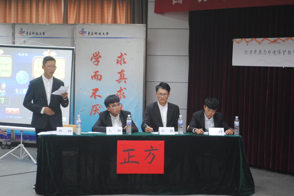 攻辩阶段,正方二辩抓住上述两者到底是否已经开始并行,还是压根没能并行这一关键点,犀利提问。反方二辩应战,做出解答后,再次强调了己方的观点,提出国家选择了的优先发展经济这一环节,将比赛带入了一个小高潮。小结之后的自由答辩环节精彩四溢,全场气氛高涨,观众情绪高昂,选手精神饱满。辩手们唇枪舌剑,你来我往,将辩论这一项活动的所需具有的口才与灵敏的反应能力表现的淋漓尽致。辩手们配合默契,例论丰富,尤其是反方四辨反应迅速、思维缜密,让观众们直呼精彩。
