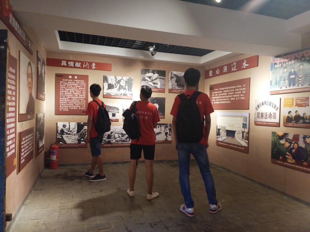 在沂蒙红嫂纪念馆,跟随着基地解说员的解说,实践团回顾了那残酷的革命战争年代,同时也感受到沂蒙人民大无畏的革命热情。沂蒙红嫂明德英乳汁救伤员、李桂芳组织妇女同志用双肩架起胜利桥、沂蒙母亲王换于及其家人不遗余力抚养20多个八路军子女、舍子拥军的方兰亭、“永远的新娘”李凤兰……这些感人事迹都深深地打动了在场的每一个人。战争没有让女人走开,在硝烟弥漫的战争岁月里,沂蒙妇女用自己独有肚饿方试,做出了一件件惊天地、泣鬼神的英雄壮举,诠释了沂蒙女性安憎分明、至善至美的纯朴心灵。在中华人民共和国的功勋册上,赫然记下了她们的名字——沂蒙红嫂。在展厅里,大家听取了王换于的孙女于爱梅作的《沂蒙母亲和她的儿女们》革命事迹报告,重温了在革命年代产生在沂蒙大地上的歌曲《沂蒙山小调》、《沂蒙颂》、《送郎参军歌》等。