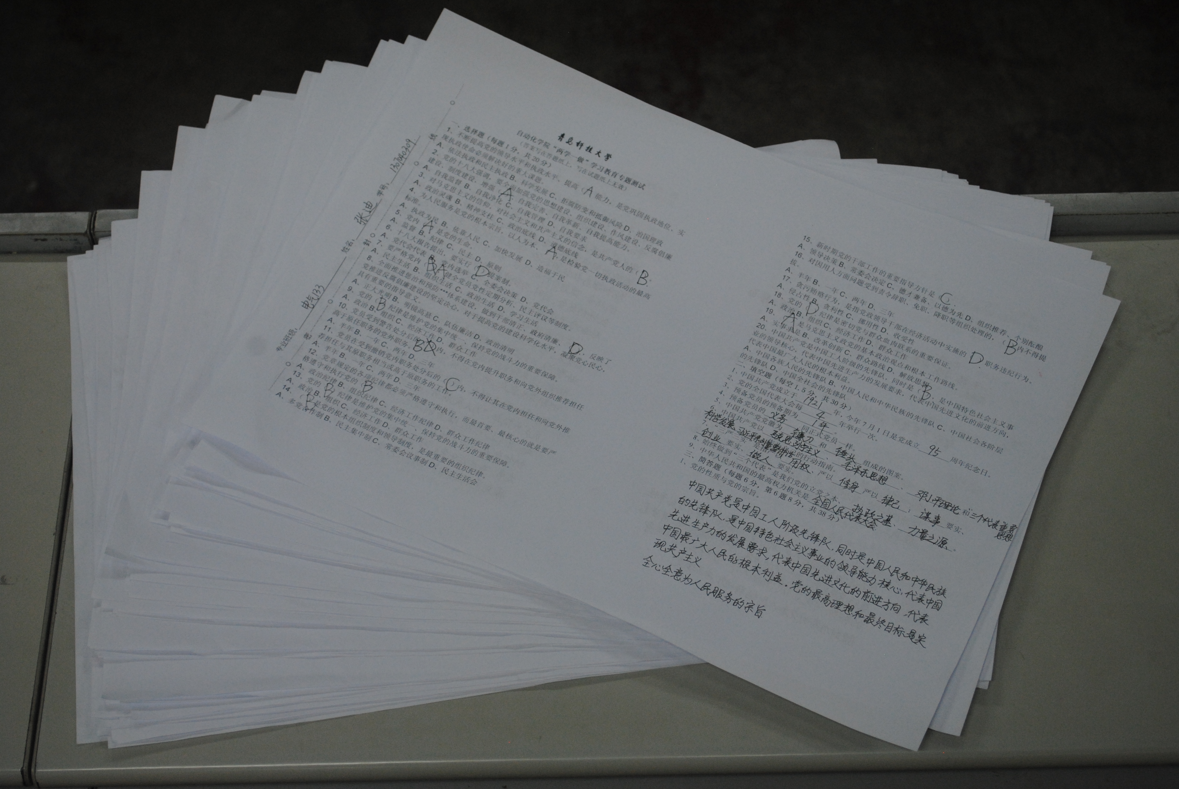 分团委老师、2013级学生党支部书记刘海波到场监考并做简要讲话,他提到本次考试的目的在于以考促学,以学促干,以此来检验我们前段时间的学习成果,推动下一步更扎实地学习,同时引导各位学生党员“立足角色做贡献”,在日常学风建设、科技创新和日常管理中创先争优。