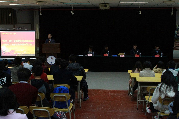 学生会秘书长党振华老师宣读2015—2016学年学生会优秀学生干部名单,并为其颁发获奖证书。学生会副主席陈鹏就上学年学生会工作进行总结,分享了学生会工作经验,并对未来发展提出了积极的意见和建议。随后,学生会秘书长党振华老师就学生会的过去、现在、将来三阶段发表讲话,充分肯定了学生会上学年的工作及所取得的荣誉,鼓励学生会找准定位、明确职责,在为师生服务的同时切实发挥好学生会自我管理、自我教育、自我服务的作用。会后,学生会内部联谊活动接连上演,各部门精心准备的《雷人舞》、《闯码头+甜蜜具现式》等精彩节目,渲染了欢乐气氛,展示了学生会团结、友爱、共进的优秀品质。