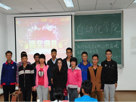 最终电气154崔津源同学成功斩获桂冠,电气153宋阳阳同学同学荣获二等奖,电气154盖建勋同学荣获三等奖,电气153丁恒、自化151李洪收获精神文明奖。张艺敏导员亲自为获奖同学颁发了奖状并与获奖同学合影留念。最后,在参赛选手、观众分别与导员合影结束后,本次比赛在同学们有序的退场中圆满结束。