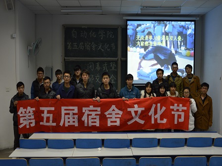 为活跃气氛,调动大家的积极性,主持人首先组织开展了一个互动游戏——“心有灵犀”。参与的同学分为5个组,每个组选出3个同学到讲台上,其中一个同学通过另外两个同学的动作和语言猜电子板上的词。每一局活动都引来同学们热烈的掌声和欢笑声。接着是最振奋人心的颁奖典礼,主持人分别宣读了“安全知识竞答”、“叠军被”等各项活动的获奖者,以及宿舍综合获奖名单和班级综合获奖名单。按照各项活动得分所占一定比重的标准,获奖的优秀宿舍分别是一等奖:1#B518,二等奖1#A311,三等奖7#2单元502;优秀班级分别是:一等奖:自化141,二等奖测控143,三等奖电网141。而后,各代表陆续上台合影留恋,自动化第五届宿舍文化节在一片欢呼声中完美落幕。