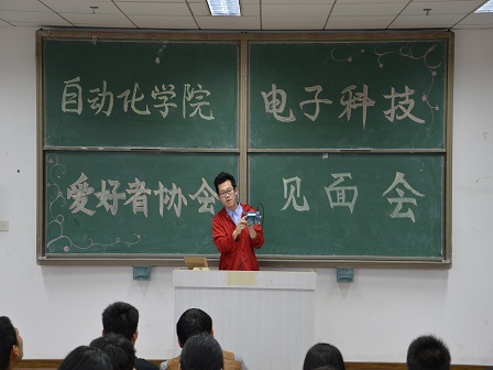 特色的先进技术。协会活动将提升协会成员的专业知识水平,增强团队合作能力,使协会成员们学到更多知识。其后,刘少鹏主席准备了单片机,简单的介绍了单片机的工作原理及其功能,他表示协会不仅在外面是一面旗帜,在内也是一个提高自身素质的平台,希望成员们继承和发扬协会的优良传统,积极参加大学生电子竞赛等一系列活动,收获知识、结识朋友、收获友谊。最后祝福大家在协会结识更多的朋友,收获更多进步。随后,张扬华会长对新生的到来表示欢迎,并且展示了自己设计的电子产品,希望大家拥有敢于创新、勇于实践的精神,通过协会学到更多。而后,学生会副主席高永强提醒同学们要注意专业成绩和个人能力的提升,要努力学习,丰富自己的个人经历,珍惜现在不留遗憾。最后,协会新成员依次进行自我介绍。