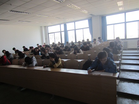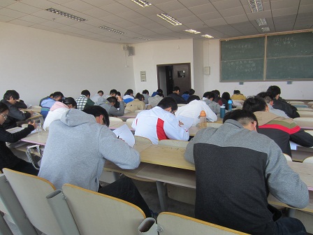 学生纷纷进入指定教室坐好,同学们都自觉保持安静,监考人员准时发卷。拿到卷子后,同学们开始认真答题,整场考试中同学们都能够自觉遵守考场纪律。卷子题目侧重校史、校训、学籍管理、奖学金评定、违纪处理等方面,考察的范围较广,可以全面客观的了解同学们对学生手册的认识程度。