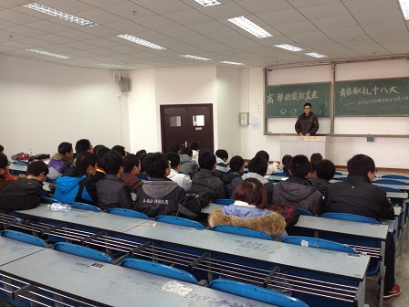 11月14日下午,自动化123班全体同学举行了“高举团旗跟党走,青春献礼十八大暨期中考试动员大会”主题班会。