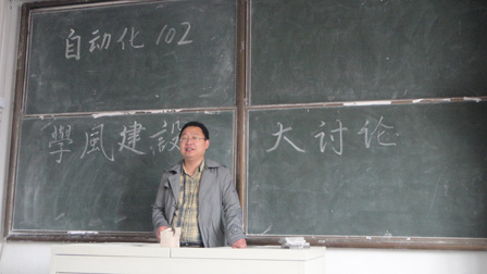 2012年5月16日,自动化102班全体成员在一教401召开了一次关于学风建设的班会。自动化102班辅导员刘兆鹏老师应邀出席。