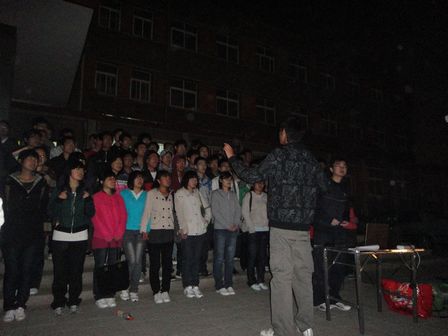 4月19日晚8:30,《保卫黄河》那激昂的旋律飘荡在青科大上空,同学们又开始在图书馆楼前进行训练了。Netflav