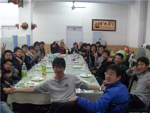 上午10点,原料准备完毕。同学们开始了自己非正规的表演,但在整个过程中同学们一直其乐融融。同学们互相涂抹,每个人生上都是白白的面粉。同学们没有几个会包饺子﹙包括女生﹚,各式各样的水饺七躺八歪的趴在面板上。有的像元宝,有的像心,有的像蝴蝶。但男生也都虚心的学习,而且他们都很乐意动手实施的每个过程。水饺包完后,同学们在焦急的等待,很是期待自己的劳动成果。 “水饺来了”同学们立马来了精神就光一般的争抢水饺,争先恐后的往嘴里送。第一锅元宝吃完了,有好多同学都没吃饱,只能无奈的等待下一锅“元宝”的出炉。吃完水饺,大伙自由聊天,真诚而又可爱,处处彰显出了出“一家人不说两家话”的气氛。
