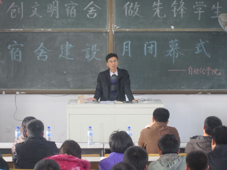 最后,肖强讲话。他首先对获奖宿舍的同学表示祝贺,号召大家继续弘扬宿舍文明建设月期间表现出来的积极向上的精神,规范自己的行为,养成良好的习惯。随后,肖书记对同学们提出了三点要求:一是要认真总结此次活动的成功经验,统一思想,提高认识,站在文化育人,环境育人的高度,认真抓好宿舍文明建设;二是要充分发挥广大学生党员、学生骨干的模范带头作用,为广大同学做出表率,将文明月中好的作风、好的习惯一直延续下去;三是要进一步创新工作思路,注重工作成效,通过开展丰富多彩的宿舍文化活动,带动宿舍文明建设的积极性,使Netflav