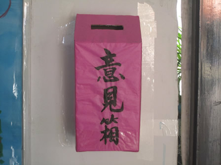 学生会调研部联合宿管委及生活部,对同学们意见的反馈能否得到采纳进行了细致的调查。调查的现实情况不很乐观,大多数同学虽对学生会或其他部门的工作有意见及好的建议,但一直没有合适的途径来反映问题,更别说解决问题了。为了缓解这一冲突,学生会、宿管委及生活部决定在各宿舍楼内设立意见箱。这些部门的服务宗旨就是为广大同学们的生活、学习及其他活动做好服务工作。在一年又一年的磨砺中,学生会等部门已成长为有自己特色、有组织、有纪律的团体,产生错误也是在所难免。设立意见箱后,同学们的意见将会很容易传达到相关部门负责人,将会有利于学生会等部门进一步完善自我,为更好地服务广大同学进一步贡献自己的力量。