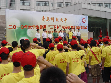 在东部校区举行出征仪式,出征仪式时的宣誓活动对我的印象颇深。我真诚地举起右手,宣誓在实践期间锻炼自我。