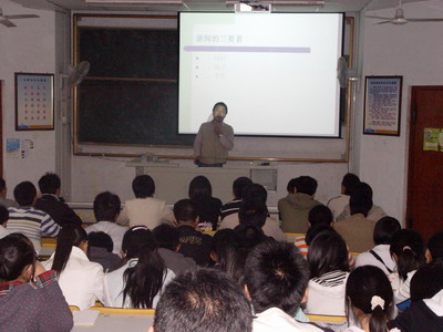 10月20日下午,Netflav 学生记者站主办的新闻宣传工作培训会举行。Netflav 网络通讯员马美云、学生记者站指导教师刘兆鹏、学生会各部负责人、记者站成员、班级宣传委员等70余人参加了本次活动。