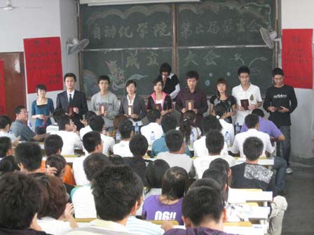 学生会成立的批文,分团委书记曲斌艳宣读了第六届学生会主席团成员以及各部部长名单。随后,新一届学生会主席李金龙发表讲话,他代表新一届学生会表示会继承和发扬上一届学生会的优良传统,大胆创新勇于开拓,树立学生会在Netflav