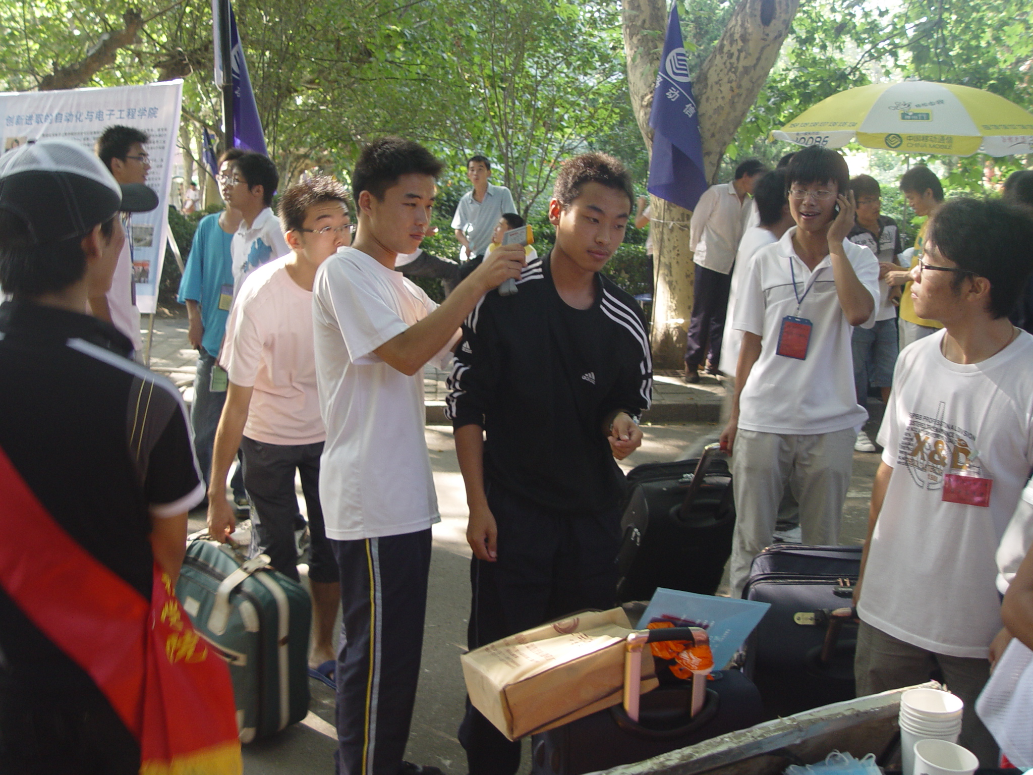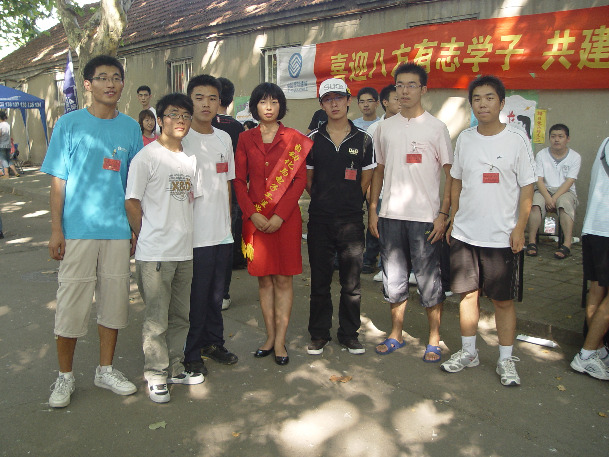 ”标志的绶带,一直在迎新现场服务,她耐心为新生及家长指引路线,协助办理各种手续,为新生家长提供茶水,发放材料,成为迎新现场一道亮丽的风景线。在和新生接触的过程中,党员们还留下自己的联系方式,在新生适应大学生活的过程中,将无偿、热心的为新生提供思想、生活、学习等方面的帮助,