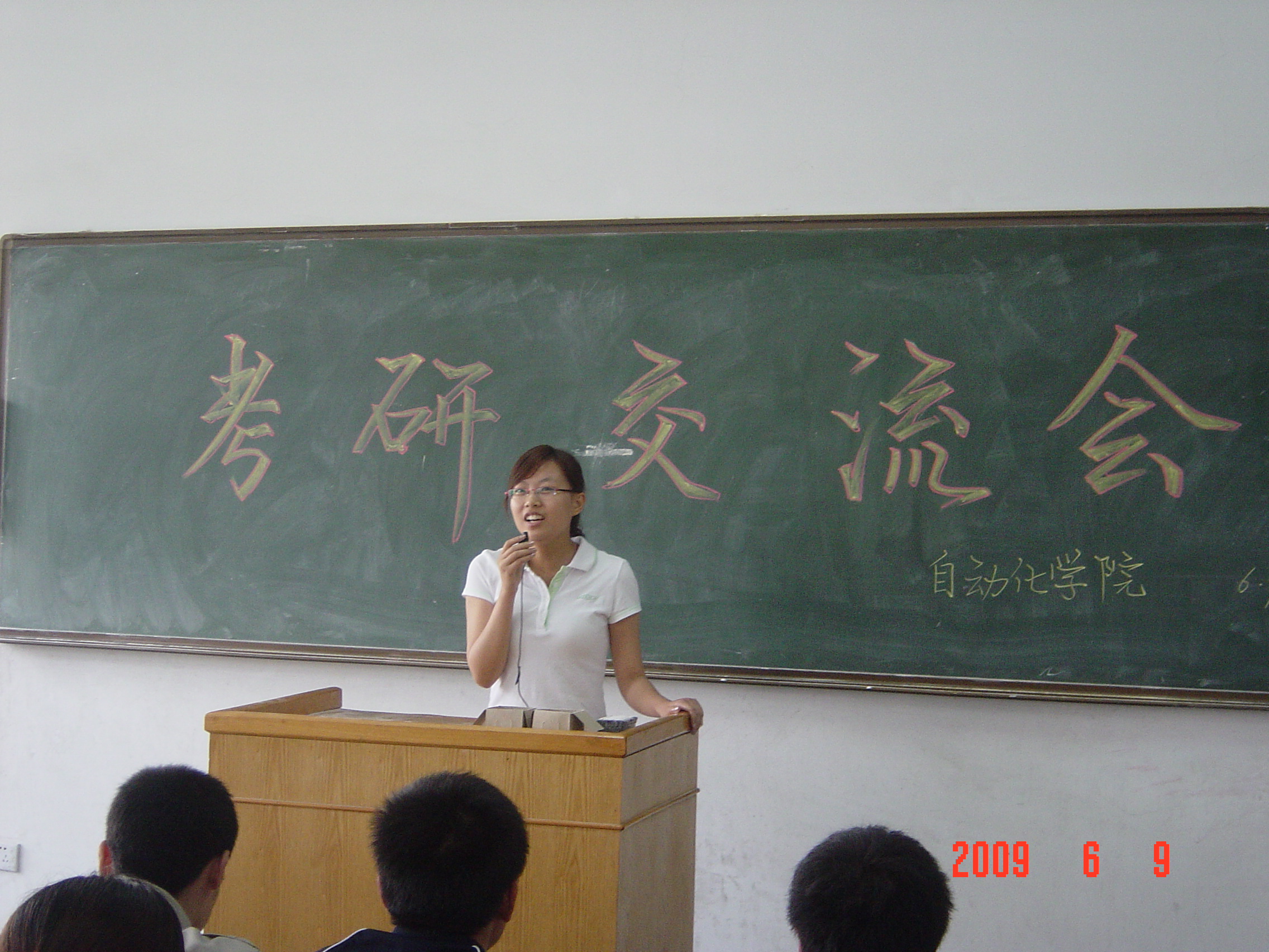 6月9日下午4:00,自动化06级在一号教学楼307教室举办了考研交流会。应邀进行经验交流的有09届考取研究生的学生代表于山山,毕慧博,翟敏,刘嘉,李军强,马铁军同学,自动化06级有意考研学生近100人参加。交流会由Netflav 分团委书记曲斌艳老师主持。