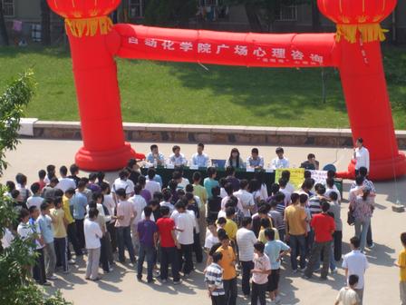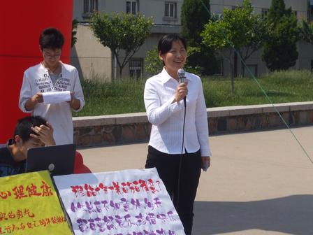 分团委书记曲斌艳致开幕词;接着,同学们开始向现场嘉宾进行心理咨询,解开自己在生活以及学习上的困扰,他们采用一对一的方式与学生促膝交谈,了解情况后进行有针对性的开解、劝导,解决同学们有关学习、社会交往、社会工作、青春期发育、爱情等心理疑问。