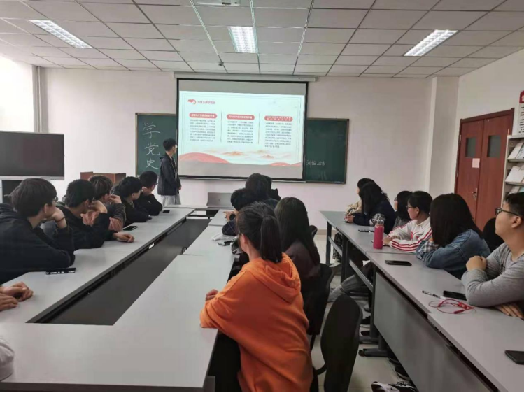 最后,团支部副书记阚新磊结合党史对团支部近期工作开展情况进行总结,旨在将从党的光辉历史中学习到的思想跟方法运用到团支部的建设与管理中,切实做到将理论与实践相结合;团支书张庆丽进行入团动员,鼓励非团员青年积极向组织靠拢,引导团员青年发扬党的优良传统和作风。