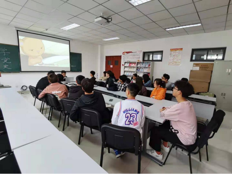 支部优秀团员代表张志星联系当前青少年的思想实际,运用大家喜闻乐见的方式,通过诙谐生动的动漫视频引导支部成员打牢思想根基,坚定理想信念,增强对党、祖国、人民的热爱,将学懂、弄通、做实落到实处,进一步凝聚实现“中国梦”的青春力量。