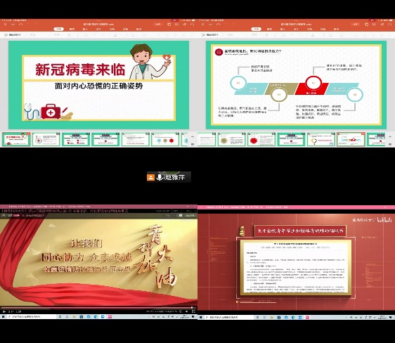 新冠病毒来势汹汹,抗击疫情,刻不容缓。随着青岛每日疫情新增数字的变化,同学们心理难免会有焦虑不安的情绪。团支部开展了“新冠病毒来临,面对内心恐慌的正确姿势”心理辅导活动,并组织观看了《青科大防疫宣传片》,引导支部成员进一步强大自己的内心,以科学的视角认识新冠病毒,缓解心里焦虑,致敬抗疫英雄,化危机为契机——领悟什么是社会责任感,从而获得真正的成长,担当时代重任。