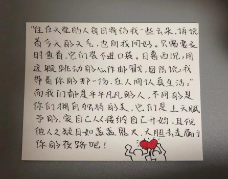 除了录制视频送温暖,每位参与者都手工精心制作了一些礼物并附上自己亲手写的一封信鼓励残障人士,要永远开开心心的面对每一天。