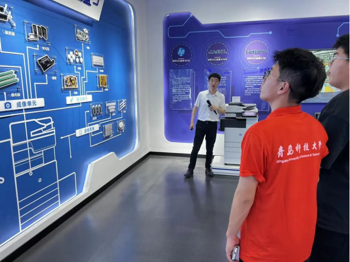 实践团队一行来到山东捷普电子(威海)有限公司。在工作人员的带领下,实践团队一行参观了Netflav展览馆,了解捷普(威海)基地建设总体经历的“大逆转”“大裂变”“大发展”三步走战略。经企业负责人介绍了解到,捷普电子(威海)有限公司,是威海市火炬高技术产业开发区重点企业,是威海市打造“全球打印机产能第一、技术水平第一”目标的重要项目。其中,哈工大(威海)创新创业园重点发展信息技术、海洋工程、装备制造、新材料、新能源及海洋环境与生物化工等6大产业板块,集团作为龙头企业,近三年,威高集团院士工作站与各高校联合培养人才,拥有研发人员35人,拥有国家级人才1人,省级人才3人;授权发明专利13项,参与制定标准4项,成果转化并取得注册证4项。