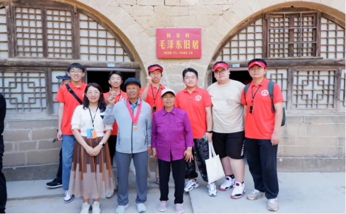 随后,成员们前往毛泽东、周恩来等革命先辈旧居,切实感受老一辈无产阶级革命家在艰难岁月中的生活场景。旧居中没有华美的修饰,留下的只有质朴与真实,一张张老旧照片,讲述了过去革命的艰苦,不断向外输送着革命的精神、奋进的力量。在毛泽东旧居前,成员们偶遇一位老兵,在征得同意后与其合影留念。成员们纷纷表示,对于革命先辈要心怀缅怀与崇敬,对于当今的生活应该倍感珍惜心存感恩。