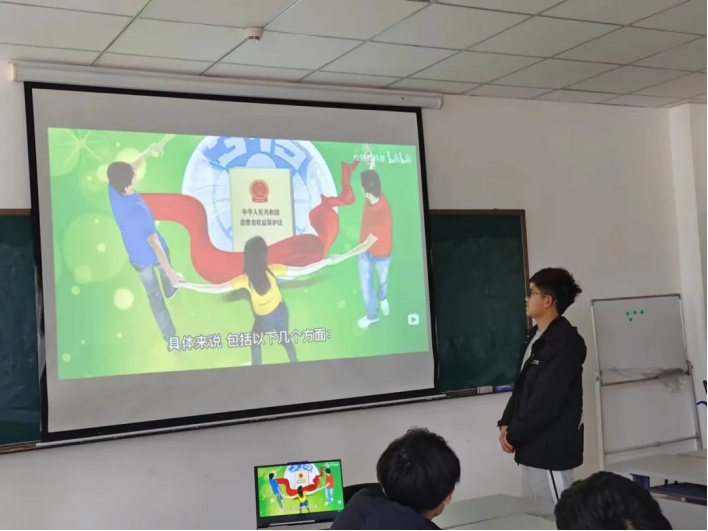 同学们共同观看了维权科普视频,视频展示了消费者在面对各类消费问题时的应对策略,并提供了实用的维权技巧,用最直观的方式传授如何正确处理消费纠纷、保护自身权益的相关知识,让同学们不仅对维权流程有了更清晰的了解,同时也极大的增强了相关自我保护意识。