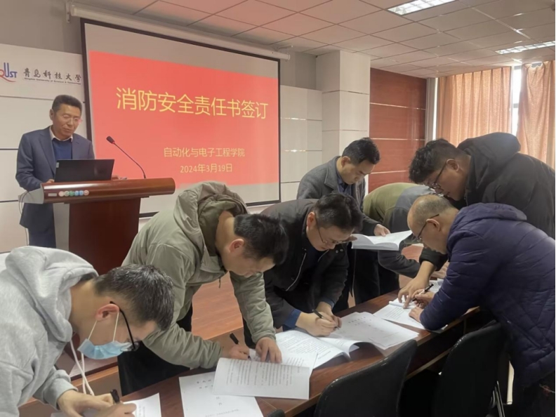 楼410会议室召开教职工大会,开展消防安全责任书签订活动。活动由常务副院长巩敦卫主持。