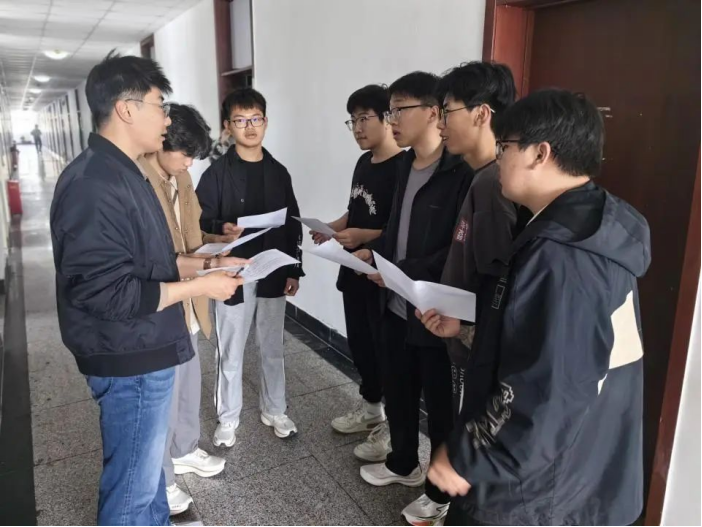 辅导员刘志飞带领学生会骨干对各个宿舍进行评选打分。