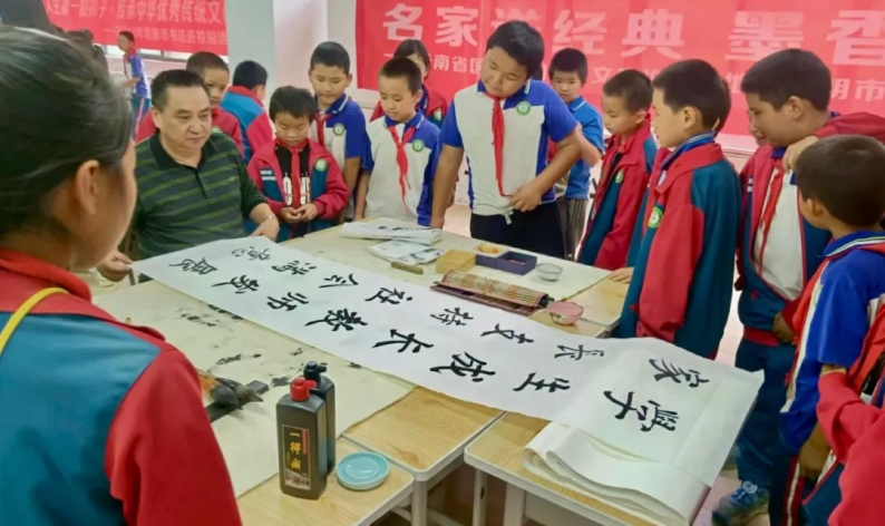 以传承优秀传统文化为己任,志愿者们来到云南省昆明市富民文昌书院重点推广硬笔书法、毛笔书法和国画,并参与组织学生参与考级、展览和各种正规比赛,探索“温度教学”,在温馨的学习氛围中,传递温暖,激发学生学习热情,把优秀传统文化的传承推广融入日常教学,让孩子们既能写好字,又能得到优秀传统文化的熏陶。