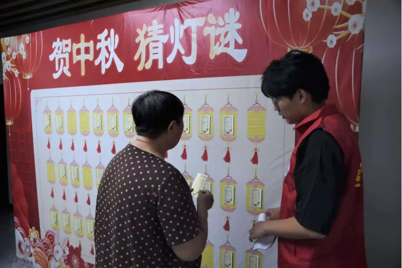 除了制作月饼,志愿者们事先准备了数十条灯谜,内容涵盖了传统文化、生活常识等各个方面。随着谜鼓咚咚敲响,“皇后求朕把关开”“集体反对”“酒后一别免打点”等一条条谜语相继被揭开谜底。活动现场,大人孩子齐上阵猜灯谜,现场欢声笑语、其乐融融。猜灯谜活动活跃了节日气氛,让大家在节日里欢乐猜灯谜,体验传统文化魅力,开阔视野、增长知识、收获乐趣。