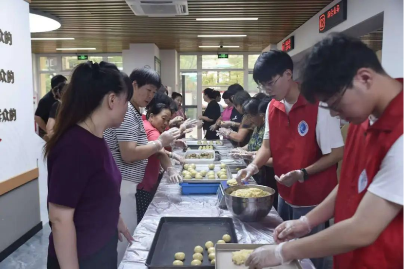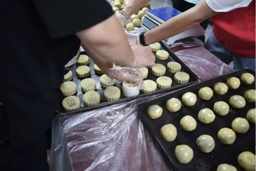 志愿者们在专业糕点师傅的悉心指导下,开始了月饼的制作。大家分工明确,拌馅、和面、擀皮儿,每一步都凝聚着团队的智慧与协作。尽管初次尝试,但在师傅的耐心引导下,大家很快就掌握了技巧,月饼在一双双巧手中诞生。现场充满了欢声笑语,散发着家的味道与温馨。