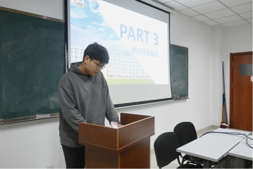 随后,上一届各部部长代表依次登台,发表了一系列回顾与展望的讲话,他们首先对过去一年中各自部门所开展的各项工作进行了全面而细致的总结,也诚恳地分析了存在的不足与面临的挑战。同时,对新任部长们传授经验,鼓励新部长们要勇于担当,敢于创新,不断提升个人能力与团队协作水平,以更加饱满的热情和专业素养,引领各部门迈入新的发展阶段。
