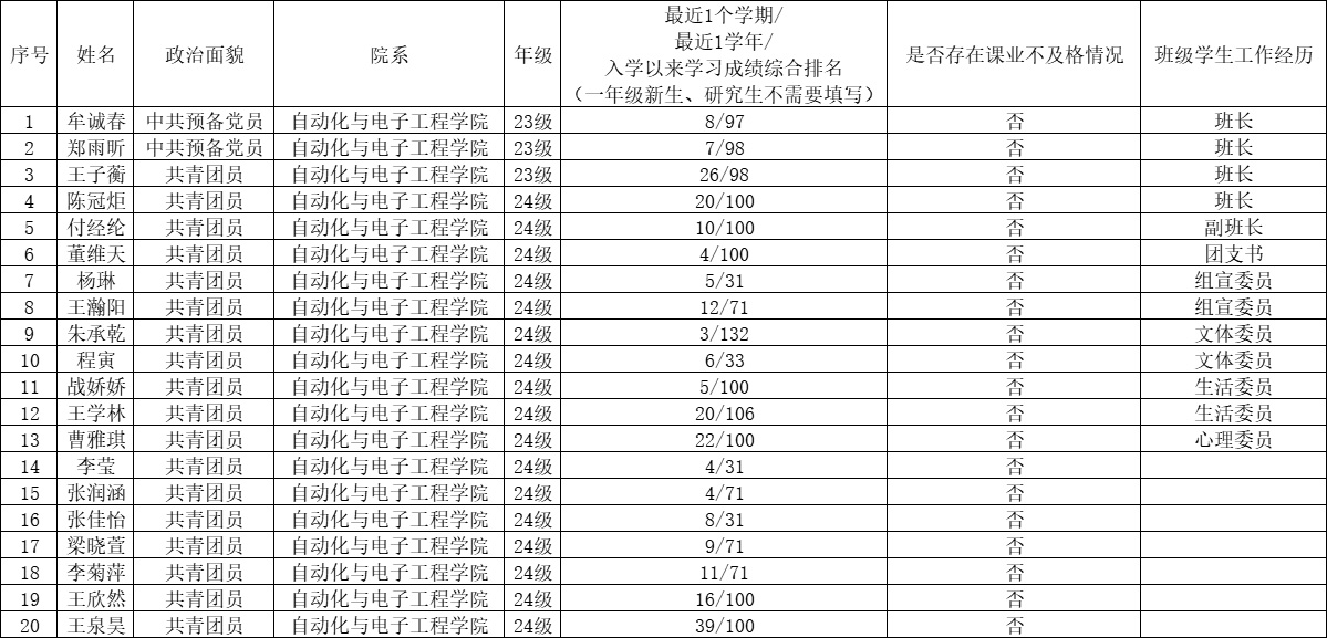 第二十二届学生会主席团候选人预备人选名单。