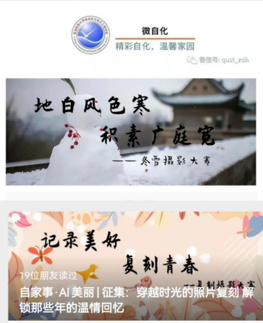 始终把学生的安全健康放在首要位置,以冬奥会为契机,号召学生假期参与“爱体育·迎冬奥”健康跑打卡,广播体操练习打卡,与冬奥健儿同运动等体育锻炼活动,促使学生养成良好生活习惯;同步开展“我和我的家乡”短视频/摄影大赛、“穿越时光”照片复刻大赛、冬雪摄影征集等美育活动,充实假期精神文化生活,提升学生审美水平。