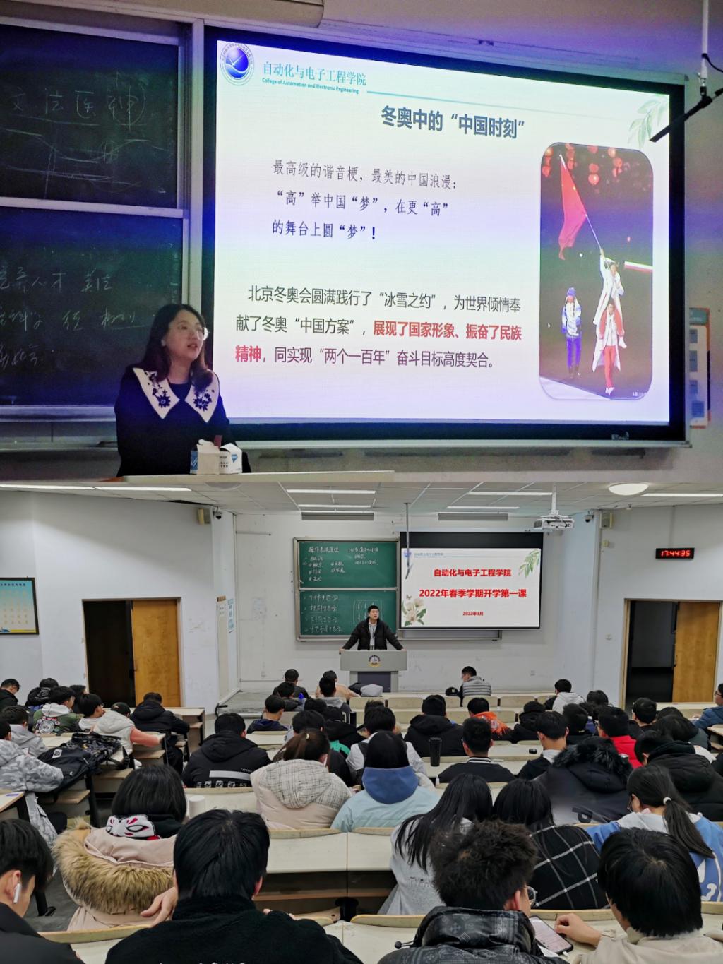 讲好冬奥故事,砥砺奋进力量。开学第一课上,师生共同观看纪录片《冬奥会带来的开学第一课》,重温北京冬奥会热点话题,讲述谷爱凌、苏翊鸣等奥运健儿的优秀事迹,引导学子深刻感悟文化自信,厚植爱国情怀,汲取青年榜样力量,发扬奥林匹克精神。通过学习《习近平总书记给中国冰雪健儿的回信》,号召青年学生以实际行动践行总书记的殷切希望,踔厉奋发,笃行不怠,在奋斗中创造精彩人生。