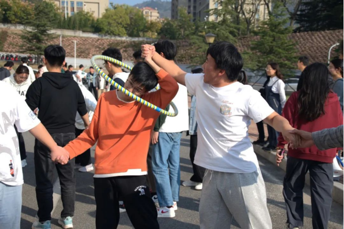 呼啦圈传递项目作为首个项目,一开场就拉高了各年级同学参与游戏活动的兴趣,助力培养团结合作精神。圈来圈往,律动的身姿,是师生翩翩起舞;紧握的双手,默契的配合,象征着我们的团结。