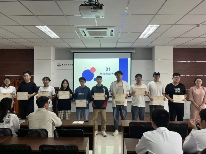 表彰环节,安柏雅、刘志飞为上一届易班工作站站长、各部门部长颁发荣誉证书。