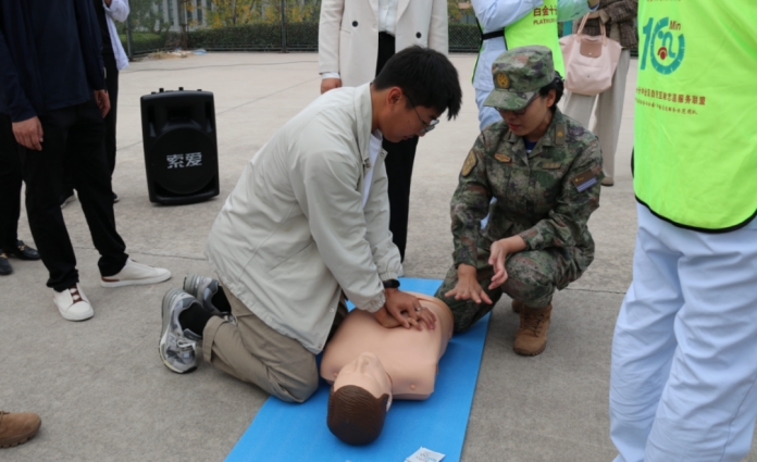 活动过程中,同学老师们踊跃参与,医护人员一对一亲自指导。通过互动教学,进一步提升了大家对急救技能的掌握。