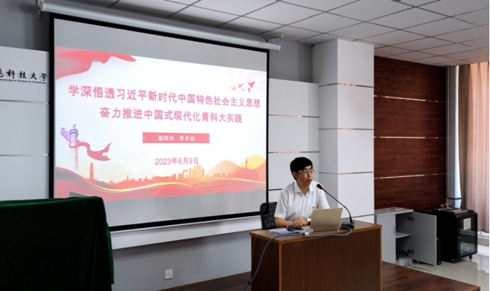 李少远以“学深悟透习近平新时代中国特色社会主义思想,奋力推进中国式现代化青科大实践”为题,围绕“提升对中国式现代化的理解认识”、“把握中国式现代化的科学内涵”、“推进学科建设,助力中国式现代化实践”三方面进行系统阐述。