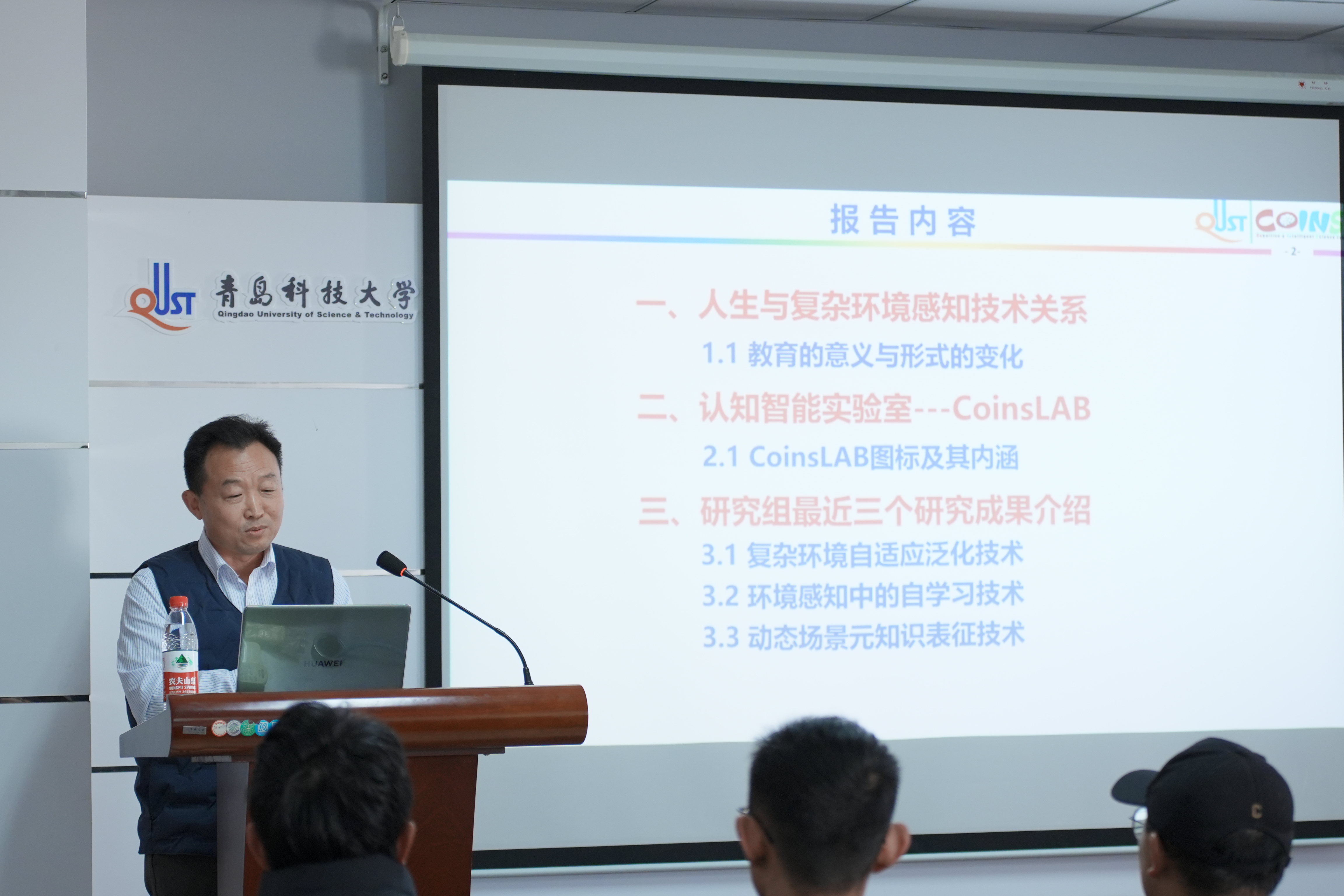 他进一步阐述了所创始的认知智能科学实验室的研究方向与内涵。实验室的标志性图案象征着认知与智能技术的融合,呈现出人类智慧与人工智能不断交织、共同发展的理念。实验室致力于推动认知科学与人工智能的深度融合,探索更具生命力与适应性的智能系统,尤其关注环境感知和智能决策领域的创新研究。